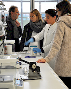Ab 10.00 Uhr waren die Labore und Unterrichtsräume geöffnet und die derzeitigen PTA-Schülerinnen und Schüler zeigten exemplarisch Inhalte ihrer Ausbildung. Der Samstagvormittag stand allen Interessierten offen, die sich für den Beruf der pharmazeutisch-technischen Assistentin oder des pharmazeutisch-technischen Assistenten interessieren und gern mal Laborluft schnuppern wollten. Alle Fragen rund um die Ausbildung und um die Voraussetzungen für die Aufnahme in das Berufskolleg für PTA wurde vom Kollegium der PTA-Schule beantwortet. Die Teilnehmerinnen und Teilnehmer der laufenden Lehrgänge stellten ganz verschiedene praktische Tätigkeiten aus den Galenik-, Botanik- und Chemiepraktika, sowie dem Fach Apothekenpraxis vor und wer Lust hatte, durfte selber mit Hand anlegen. Zahlreiche Eltern und Freunde der aktuellen PTA-Schülerinnen und Schüler nutzten die Gelegenheit, die Labore der PTA-Abteilung und die Lehrapotheke einmal in Aktion zu erleben.